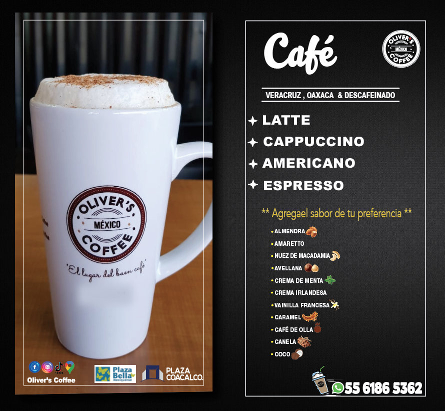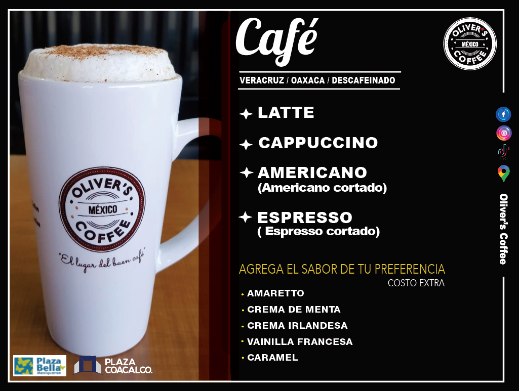 Whether you're seeking a caffeine fix or a light meal, Oliver's Coffee Mexiquense promises an inviting experience sure to delight your senses.